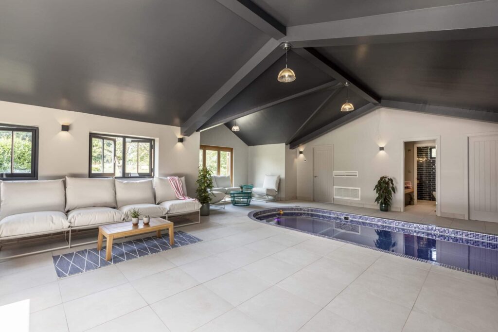 Available by Exclusive hire only, this 11-bedroom holiday house in Kent with indoor pool. sleeping 22+ and dog friendly, is a perfect spot for special events within easy reach of London.