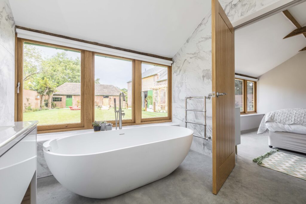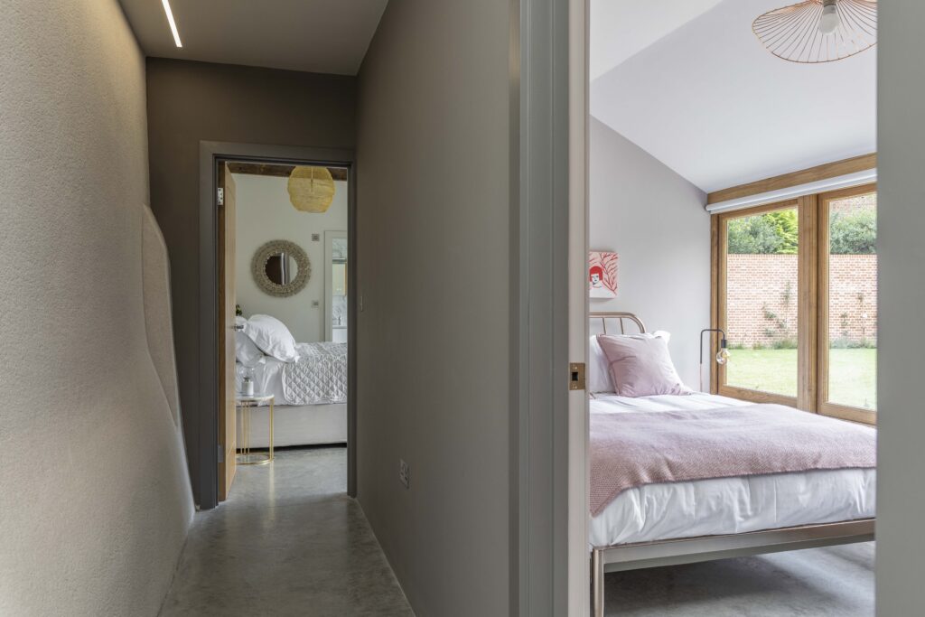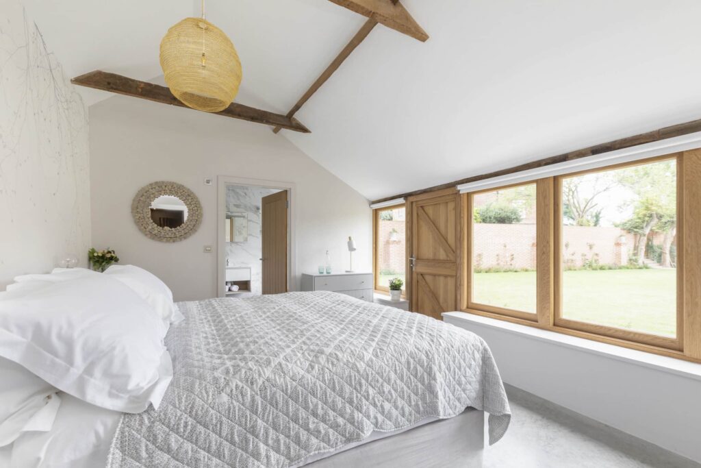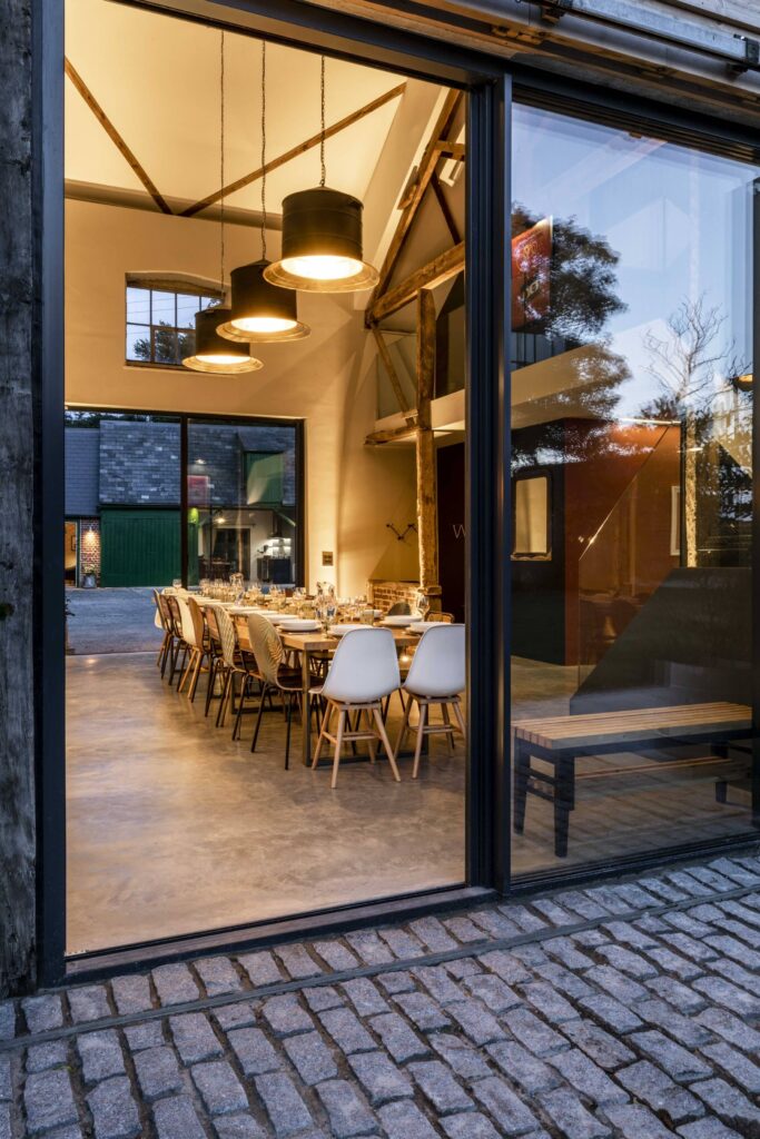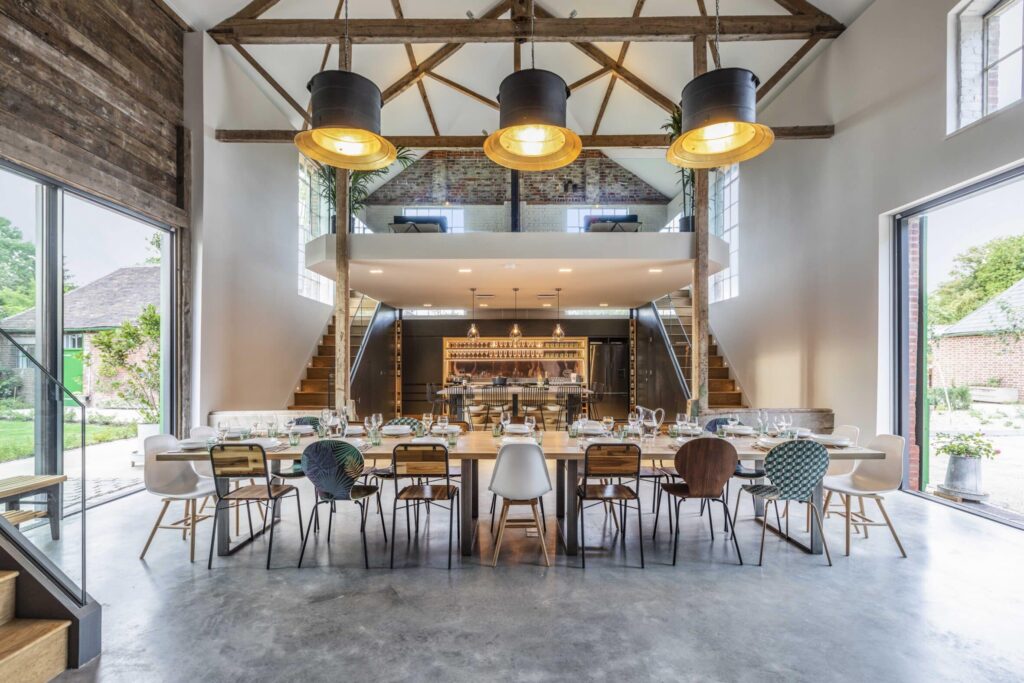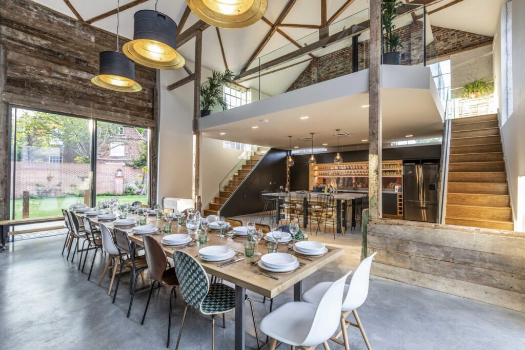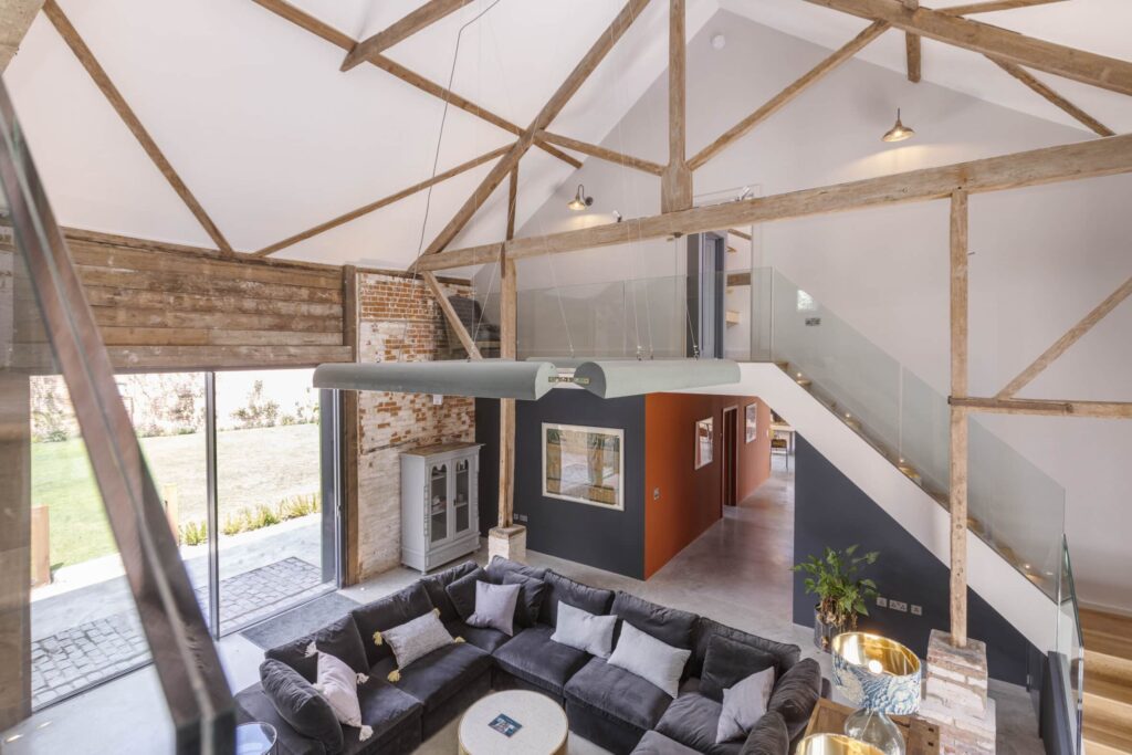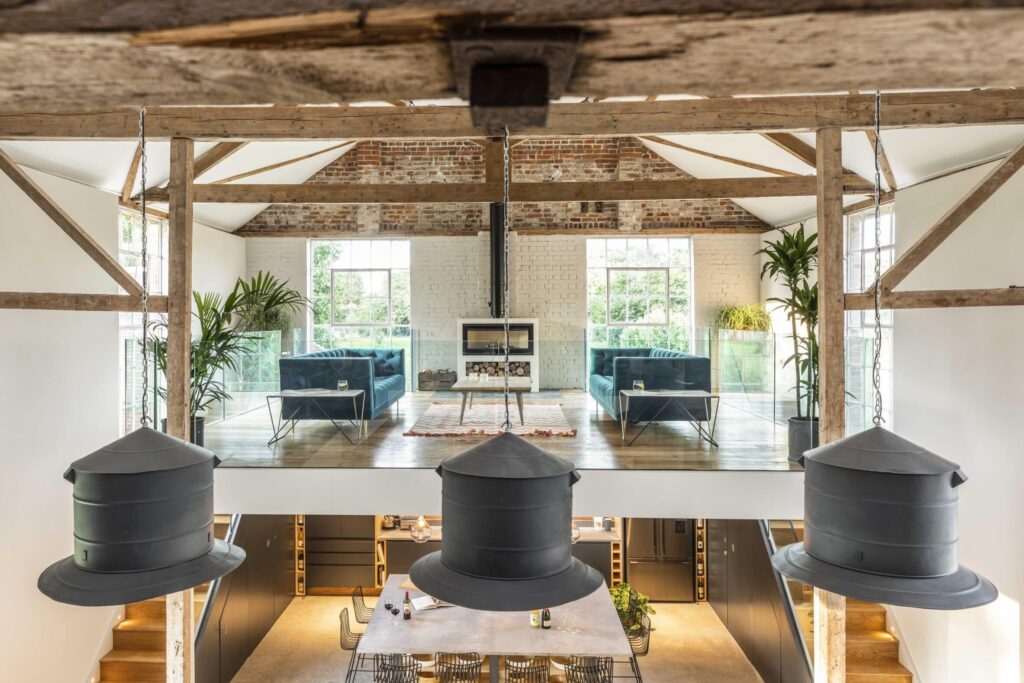 After painstaking renovation and restoration it is now an incredible space with vaulted ceilings galleried landings and glorious double height glass doors to the outside spaces.