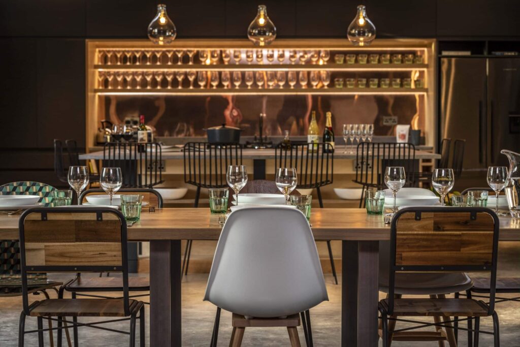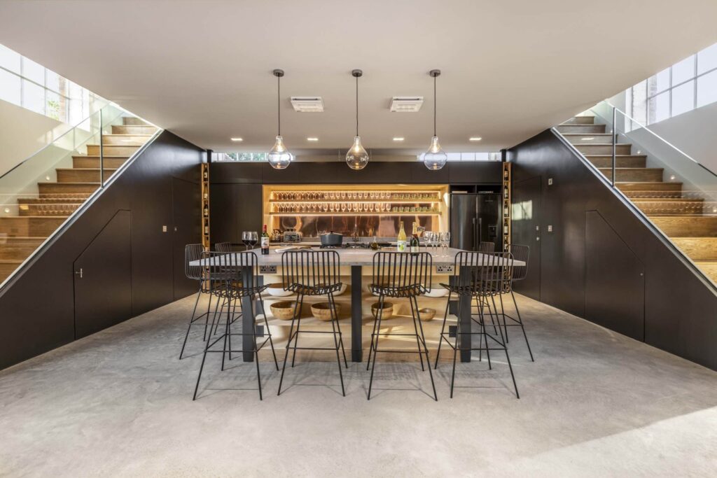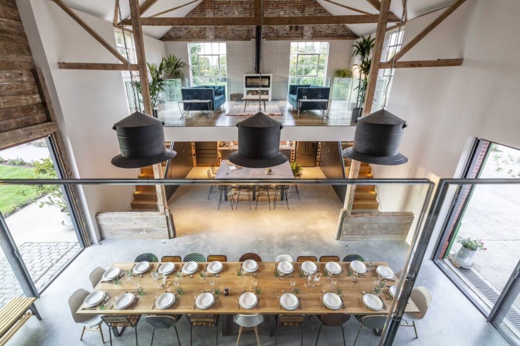 There is a fantastic modern kitchen and dining area that can seat all 22 guests and a spacious mezzanine with log-burner perfect for evening cocktails or to hide away and read the latest blockbuster.